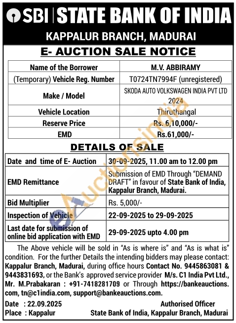 Vehicle Reg. Number T0724TN7994F (unregistered) Make / Model SKODA AUTO VOLKSWAGEN INDIA PVT LTD 2024 Vehicle Location Thiruthangal