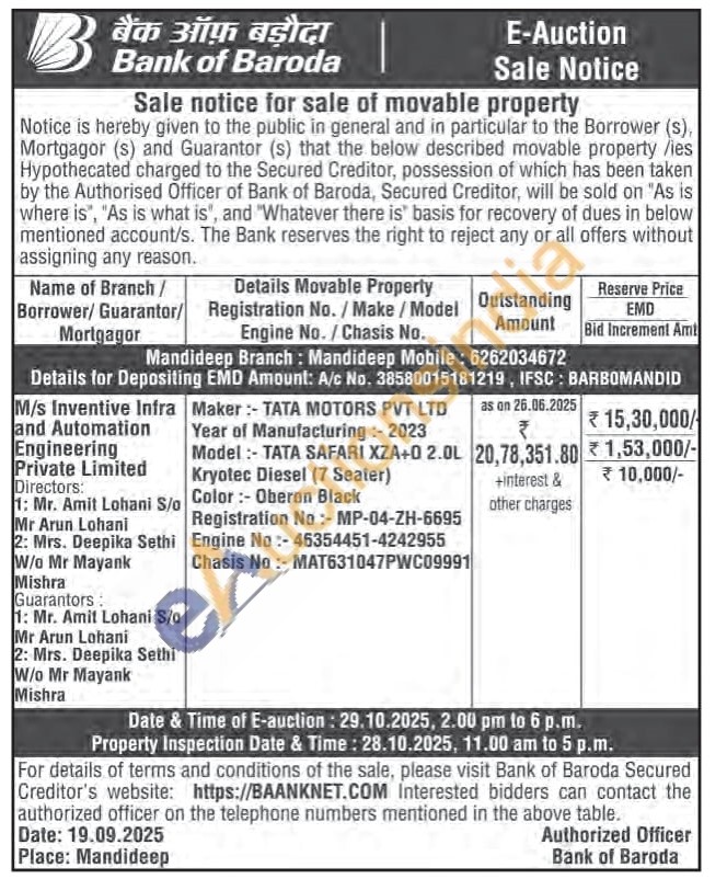 Maker:- TATA MOTORS PVT LTD Year of Manufacturing :- 2023 Model:- TATA SAFARI XZA+O 2.0L Kryotec Diesel (7 Seater) Color: Oberon Black Registration No: MP-04-ZH-6695 Engine No:-46354451-4242955 Chasis No:- MAT631047PWC09991