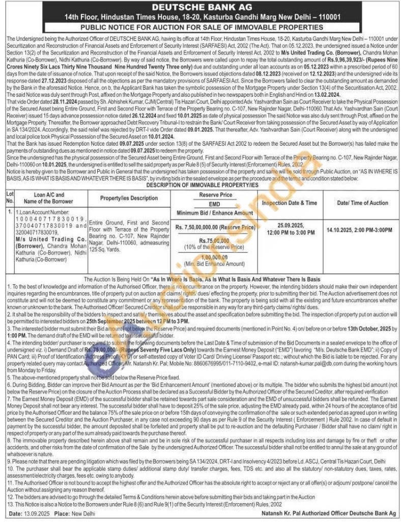 Authorized Officer: Mr. Natansh Kr. Pal Mobile No : 8860676995 / 011-7110-9402