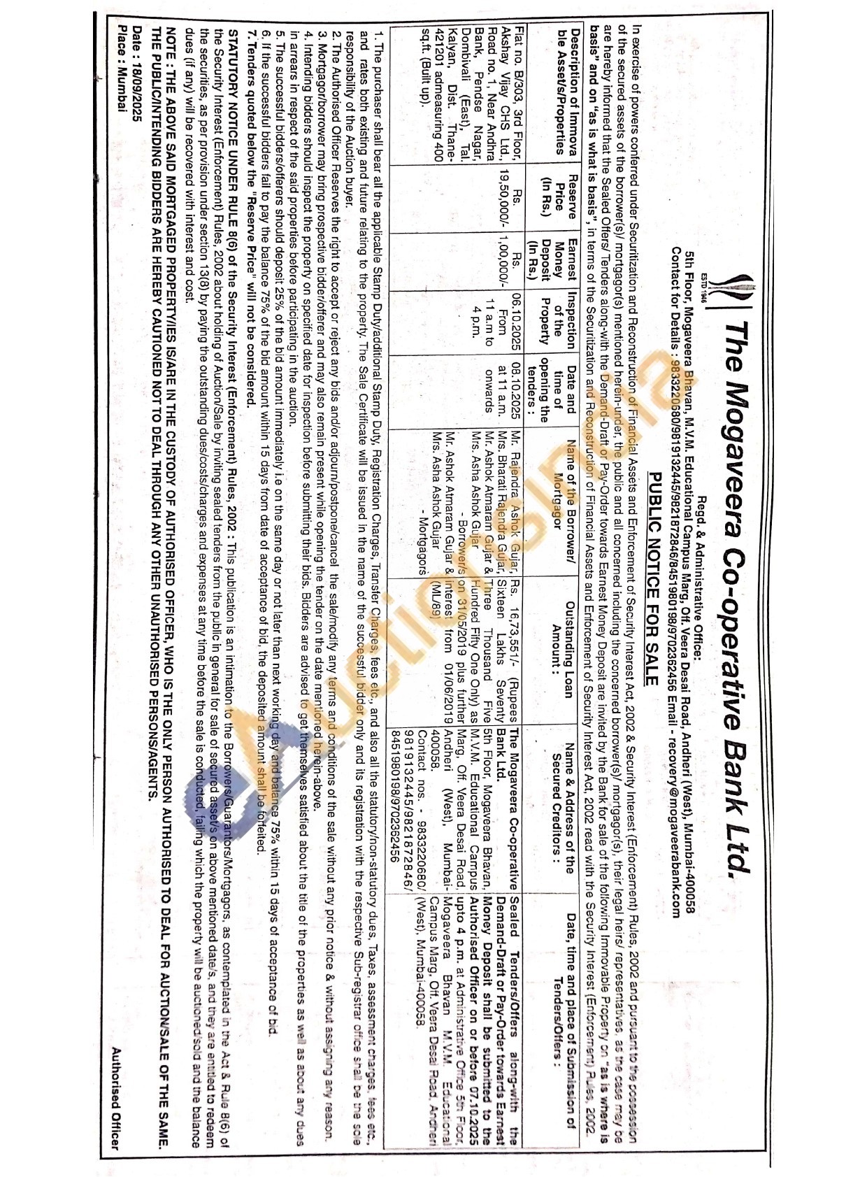 Contact nos. 9833220680/9819132445/9821872846/8451980198/9702382456