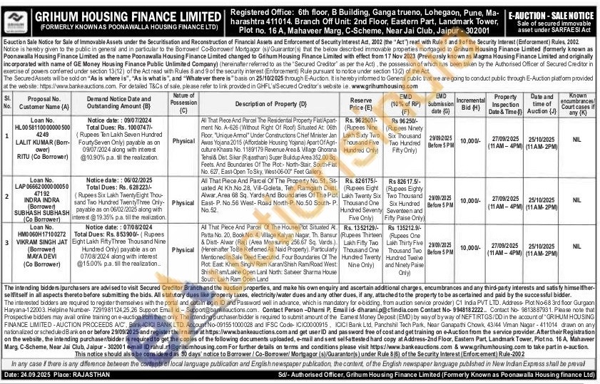 All That Piece And Parcel Of The Property No. 51, Sit-uated At Kh.No.28, Vill-Goleta, Teh. Ramgarh Distt. Alwar, Area 68 Sq. Yards And Boundaries Of The Plot East- P. No.56 West-Road North-P. No.50 South- P. No.52.