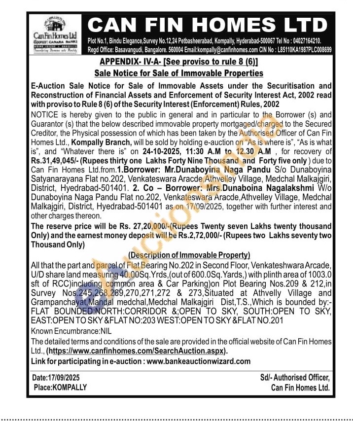 Contact Email:kompally@canfinhomes.com