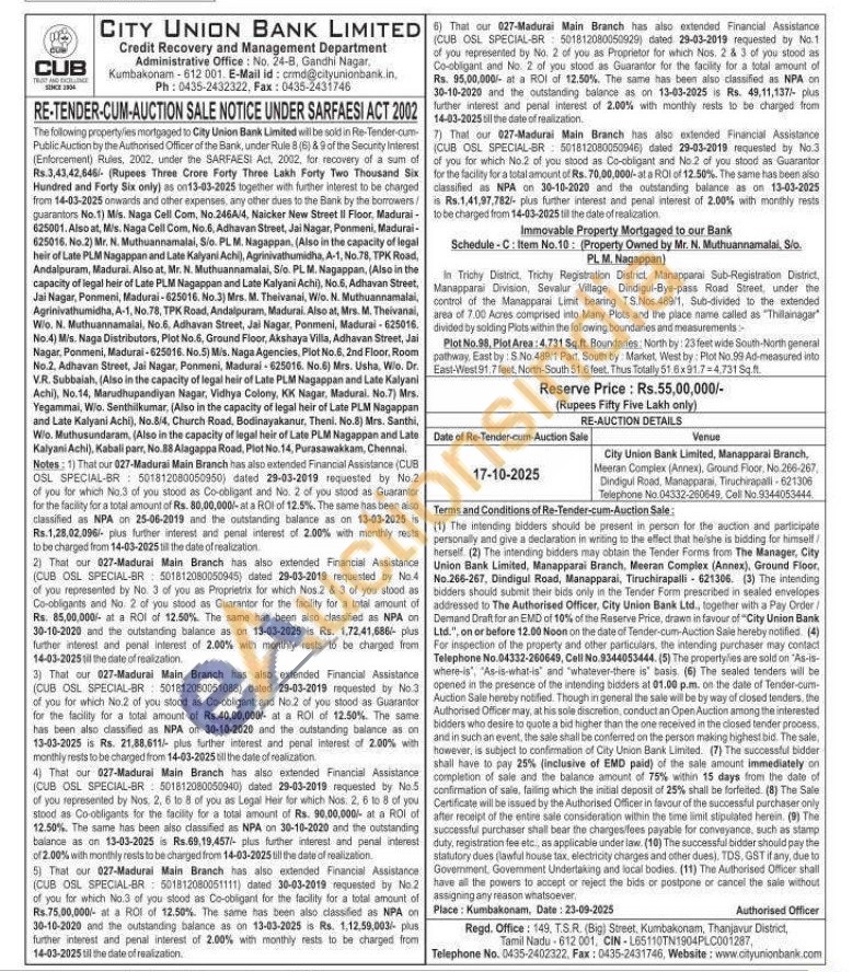 In Trichy District, Trichy Registration District, Mariapparai Sut-Registration District Manapparal Division, Sevalur Village, Dindigul-Bye-pass Road Street, under the control of the Manapparai Limit bearing TS Nos 489/1, Sub-divided to the extended area of 7.00 Acres comprised into Many Plsts and the place name called as "Thillainagar" divided by solding Plots within the following boundaries and measurements Plot No.98, Plot Area: 4,731 Sq.ft. Boundaries: North by: 23 feet wide South-North general pathway, East by: S No.489/1 Part, South by: Market West by: Plot No.99 Ad-measured into East-West 91.7 feet North-South 51.6 feet. Thus Totally 516x91.7-4,731 Sq