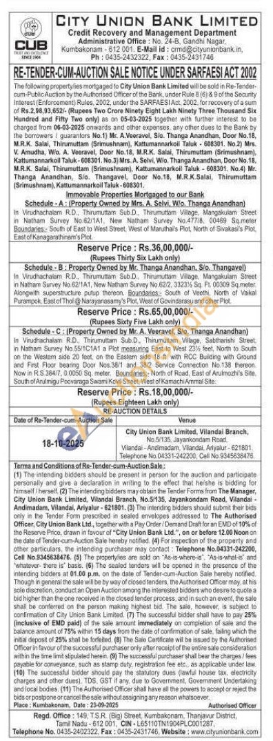 Contact Telephone No. 04331-242200, Cell No. 9345638476
