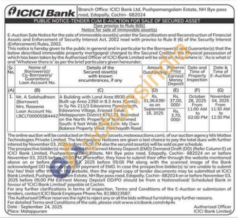A Building with Land Area 8930 and Built-up Area 2350 in 8.3 Ares (Cents) in Sy No 211/3 Edavanna Panchayath, Edavanna Village, Eranad Taluk Malappuram District 676123. Bounded on the North: Property of Mohammed South: 6 feet Wide Road East: My Own Balance Property West: Panchayath Road