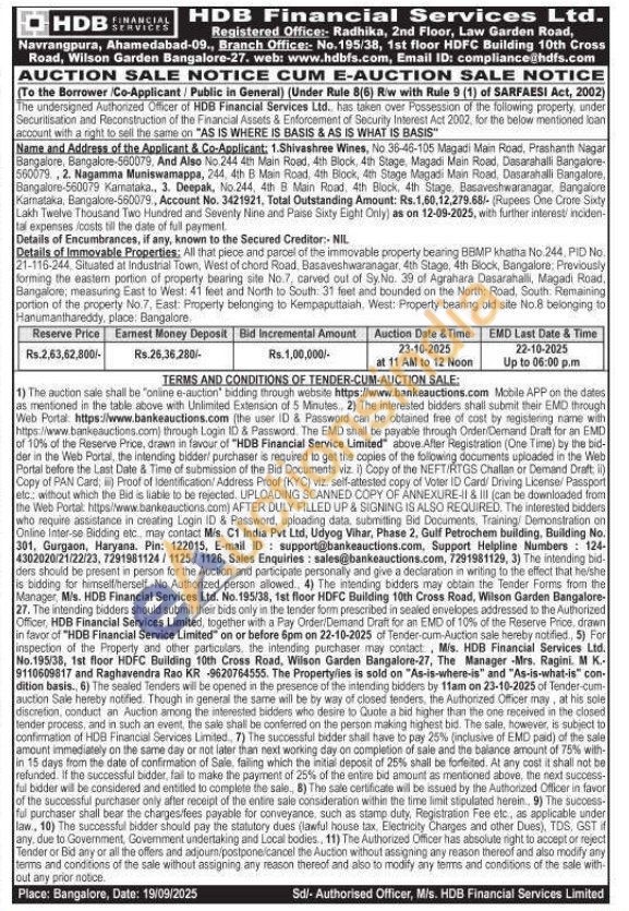 All that piece and parcel of the immovable property bearing BBMP khatha No.244. PID No. 21-116-244, Situated at Industrial Town, West of chord Road, Basaveshwaranagar, 4th Stage, 4th Block, Bangalore, Previously forming the eastem portion of property bearing site No.7, carved out of Sy.No. 39 of Agrahara Dasarahalli, Magadi Road, Bangalore, measuring East to West: 41 feet and North to South: 31 feet and bounded on the North: Road, South: Remaining portion of the property No.7, East: Property belonging to Kempaputtaiah, West: Property bearing old site No.8 belonging to Hanumanthareddy, place: Bangalore