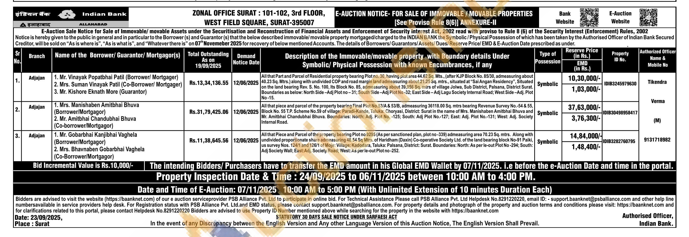 All that Piece and Parcel of the property bearing Plot no 0295 (As per sanctioned plan, plot no-339) admeasuring area 70.23 Sq. mtrs. Along with 25 undivided proportionate share admeasuring 48.54 Sq Mtrs. of Haridham (Daxin) Co-operative Society Ltd. of the land bearing block No-91 Paiki, us survey Nos. 124/1 and 126/1 of Moje: Village: Kadodara, Taluka: Palsana, District: Surat. Boundaries: North: As per le-out Plot No-294; South: Adj Society Wall; East: Adj. Society Road; West: As per le-out Plot no-252.