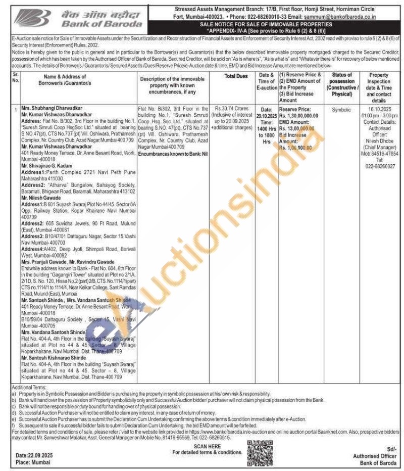 Flat No. 8/302, 3rd Floor in the building No. 1, "Suresh Smruti Coop Hisg Soc Ltd. situated at bearing S.NO. 47(pt), CTS No.737 (pt) Vill. Oshiwara, Prathamesh Complex, Nr. Country Club, Azad Nagar Mumbai 400709