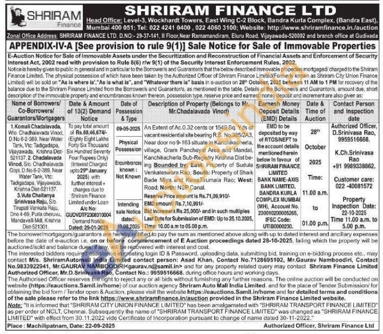 An Extent of Ac.0.32 cents or 1549 Sq. Yds of vacant residential site bearing R.S. No.385/2A3, Near door no 9-163 situate in Kanchikacheria, village, Gram Panchayat Area and Mandal,Kanchikacherla Sub-Registry Krishna Dist being Bounded by: East: Property of Sudula Venkateswara Rao, South: Property of Shaik Bade Miya and Kurra Tirumala Rao; West: Road: North: NSP Canal.