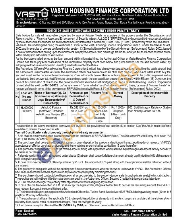 Authorised Officer: Mr. Tushar Barot, Mobile No.: 9727755261