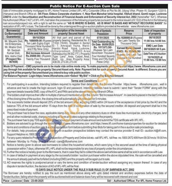 All that part and parcel of the property bearing. Residential No. E 7/334 (18/40), Situated in Sector E-7. Amrapali Yojna. Ward-Hardoi Road Yojna. Lucknow, Uttarpradesh, 226003 Area (IN FT) Admeasuring (IN SQ Exproperty Built Up Area Property Area: 438.00, 273.00,273.00