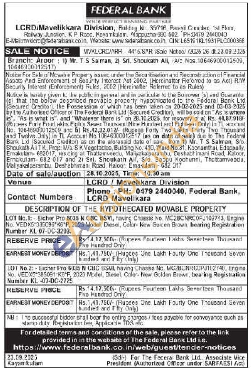 LOT No.2: Eicher Pro 6035 N CBC BSVI, having Chassis No. MC2BCNRCOPJ102740, Engine No. VEDX5 385091 K6 P, 2023 Model, Diesel, Color- New Golden Brown, bearing Registration Number KL 07-DC-2725