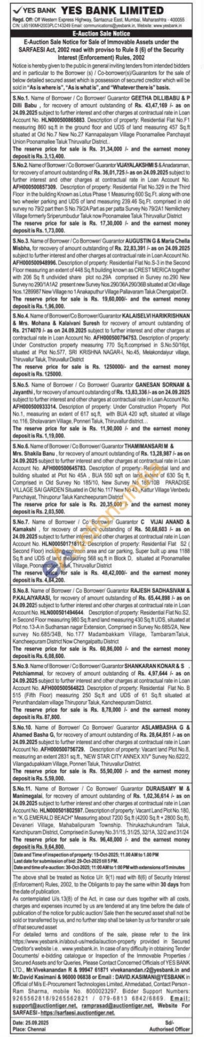 Contact Person-Ram Sharma, mobile No. 8000023297 Contact Concerned Officials of YES BANK LTD., Mr.Vivekanandan R & 99947 61871