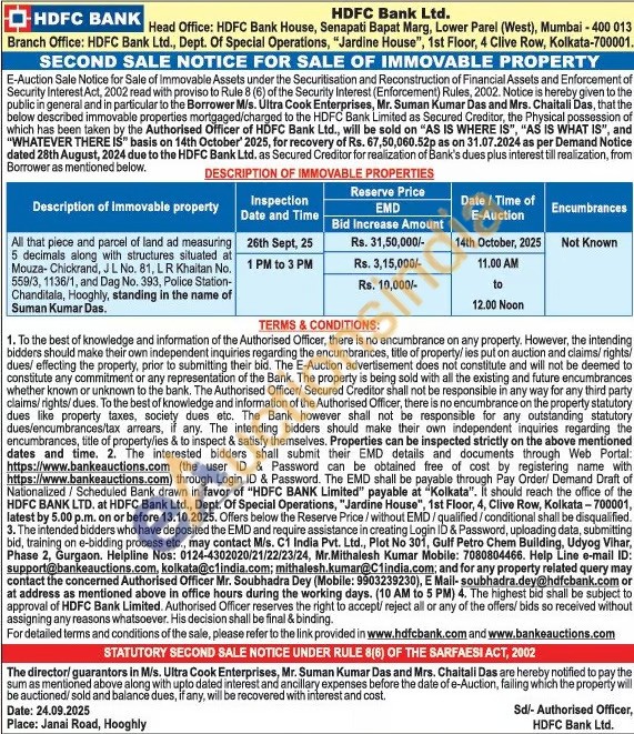 Authorised Officer Mr. Soubhadra Dey (Mobile No : 9903239230)