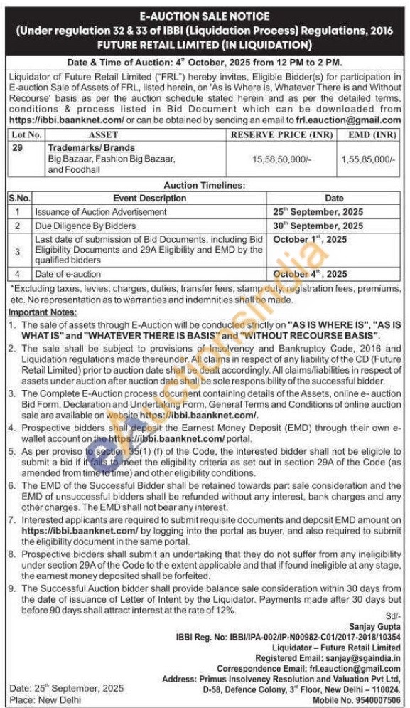Trademarks/Brands Big Bazaar, Fashion Big Bazaar, and Foodhall
