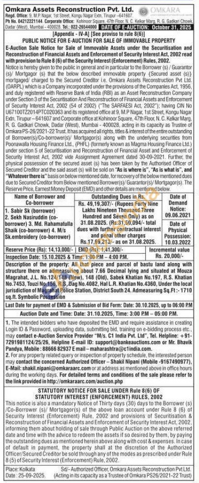 All that piece and parcel of bastu land along with structure there on admeasuring about 7.66 Decimal lying and situated at Mouza Magrahat, J.L. No.124/148 (New), 148 (Old), Sabek Khatian No.197, R.S. Khatian No.7453, Touzi No. 156, R.S. Dag No. 4082, Hal L.R. Khatian No.4360, Under the local jurisdiction of Magrahat Police Station, District South 24. Admeasuring Sq. Ft:-1710 sq.ft. Symbolic Possession