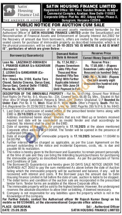 Rat No. Gf-01(Hig), Ground Floor Without Roof Rights On Plat No. B-5. Khasra No.- 234. Covered Area-66.88 Sq. Mtrs, Situated At Rail Vihar, Area Of Village Sadullabad, Pargana & Tehsil Loni, District- Ghaziabad, U.P. Bounded As Under: East-Plot No. B 15, West Road 30 Ft. Wide, North- Other's Property, South- Plot No. B-6, (Registered On-Dt. 22/06/2022, Book No. 1, Vol. No. 3692, Page No. 285 To 316, Sl. No. 9842)