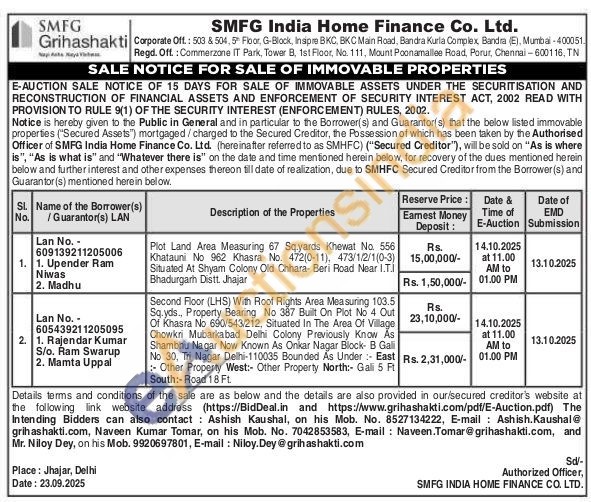 Second Floor (LHS) With Roof Rights Area Measuring 103.5 Sq.yds., Property Bearing No 387 Built On Plot No 4 Out Of Khasra No 690/543/212, Situated In The Area Of Village Chowkri Mubarkabad Delhi Colony Previously Know As Shambhu Nagar Now Known As Onkar Nagar Block B Gali No 30, Tri Nagar Delhi-110035 Bounded As Under East Other Property West: Other Property North: Galli 5 Ft South:-Road 18 Ft.