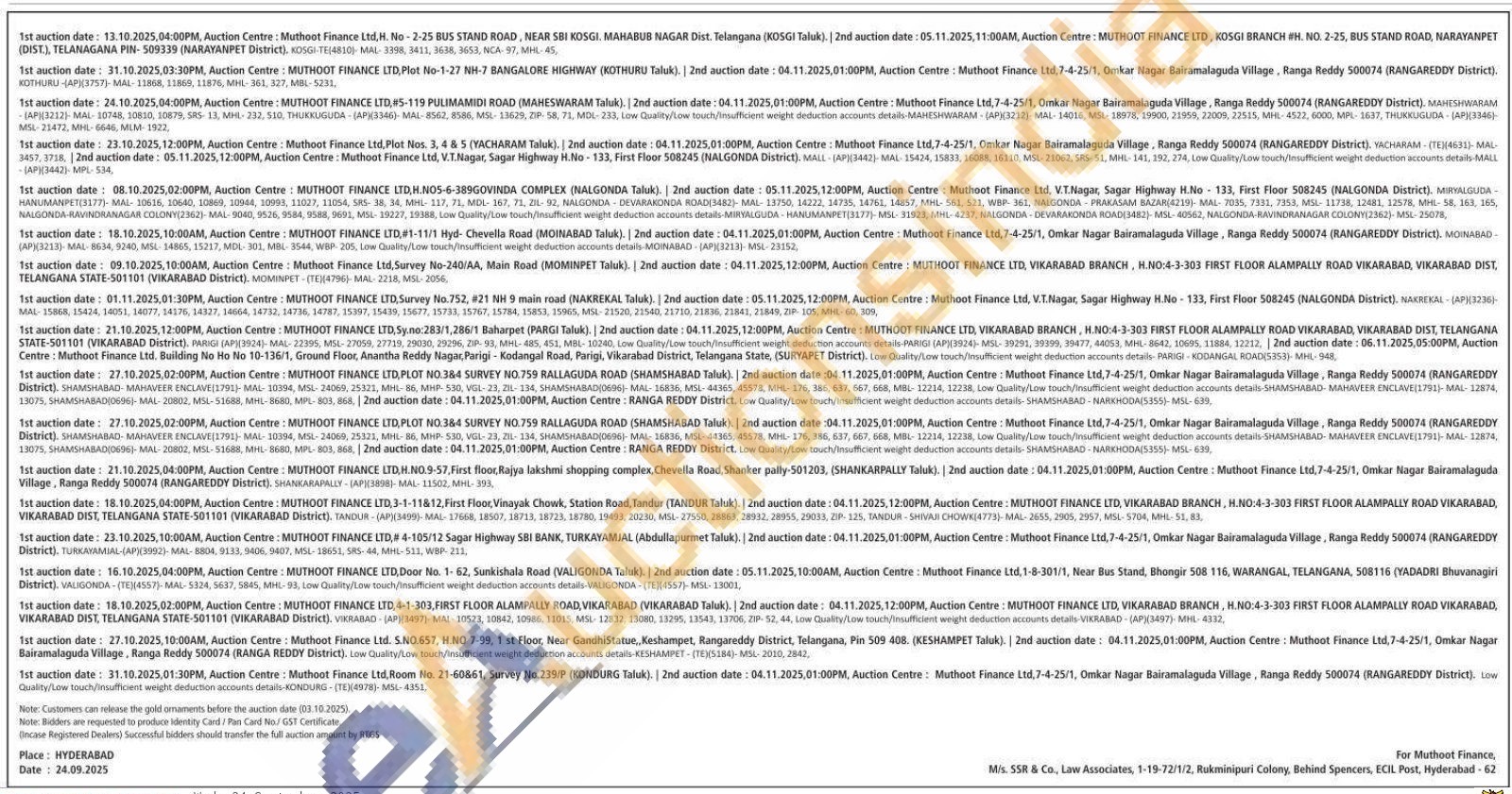 Muthoot Finance Ltd Gold Auctions Auction in Hyderabad