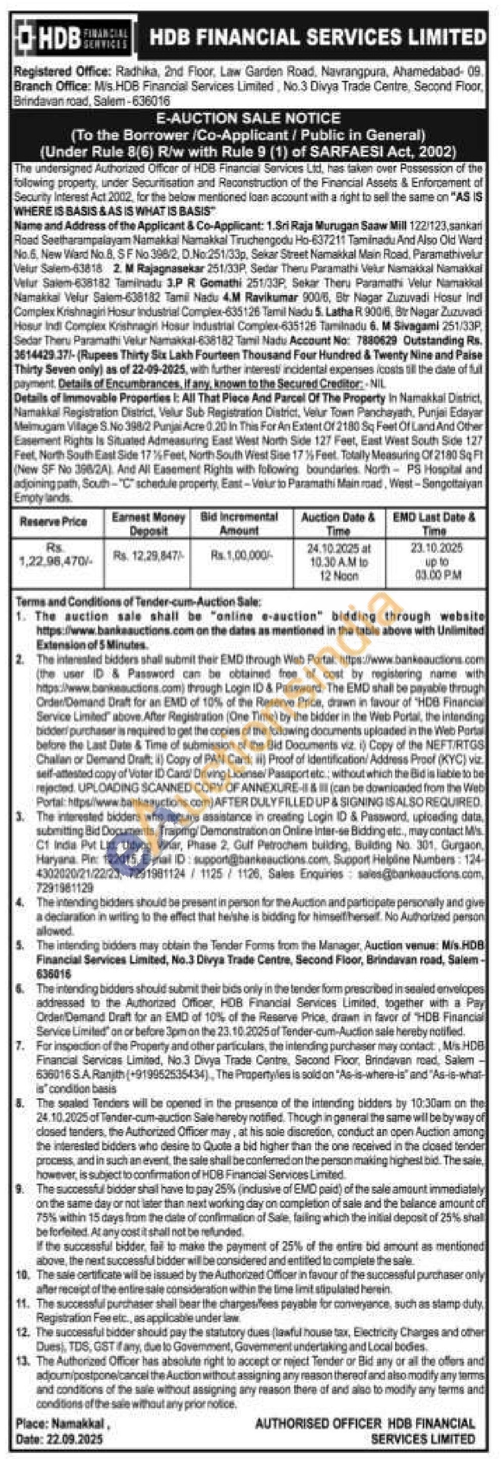 Namakkal District, Namakkal Registration District, Velur Sub Registration District, Velur Town Panchayath, Punjai Edayar Melmugam Village S.No 398/2 Punja Acre 0.20 in This For An Extent Of 2180 Sq Feet Of Land And Other Easement Rights Is Situated Admeasuring East West North Side 127 Feet, East West South Side 127 Feet, North South East Side 17% Feet, North South West Sise 173) Feet. Totally Measuring Of 2180 Sq Ft (New SF No 366/2A). And All Easement Rights with following boundaries. North-PS Hospital and adjoining path, South"C" schedule property, East-Velur to Paramathi Main road, West-Sengoltaiyan Emptylands