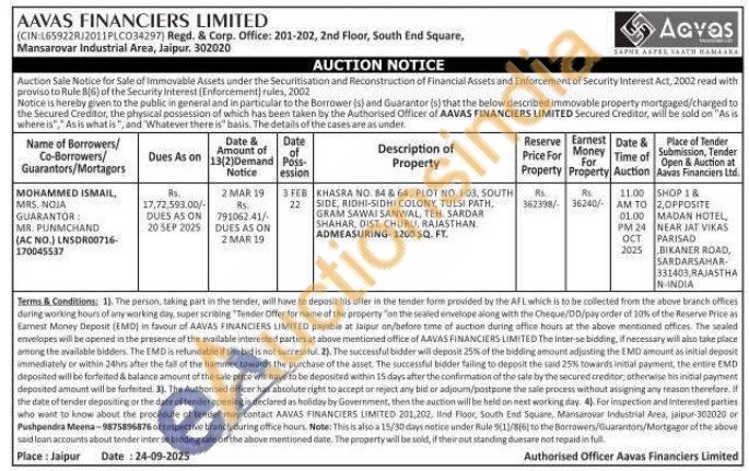 KHASRA NO. 84 & 64, PLOT NO. 1-03, SOUTH SIDE RIDHI-SIDHI COLONY, TULSI PATH, GRAM SAWAI SANWAL, TEH SARDAR SHAHAR, DIST CHURU, RAJASTHAN ADMEASURING-1200 SQ. FT