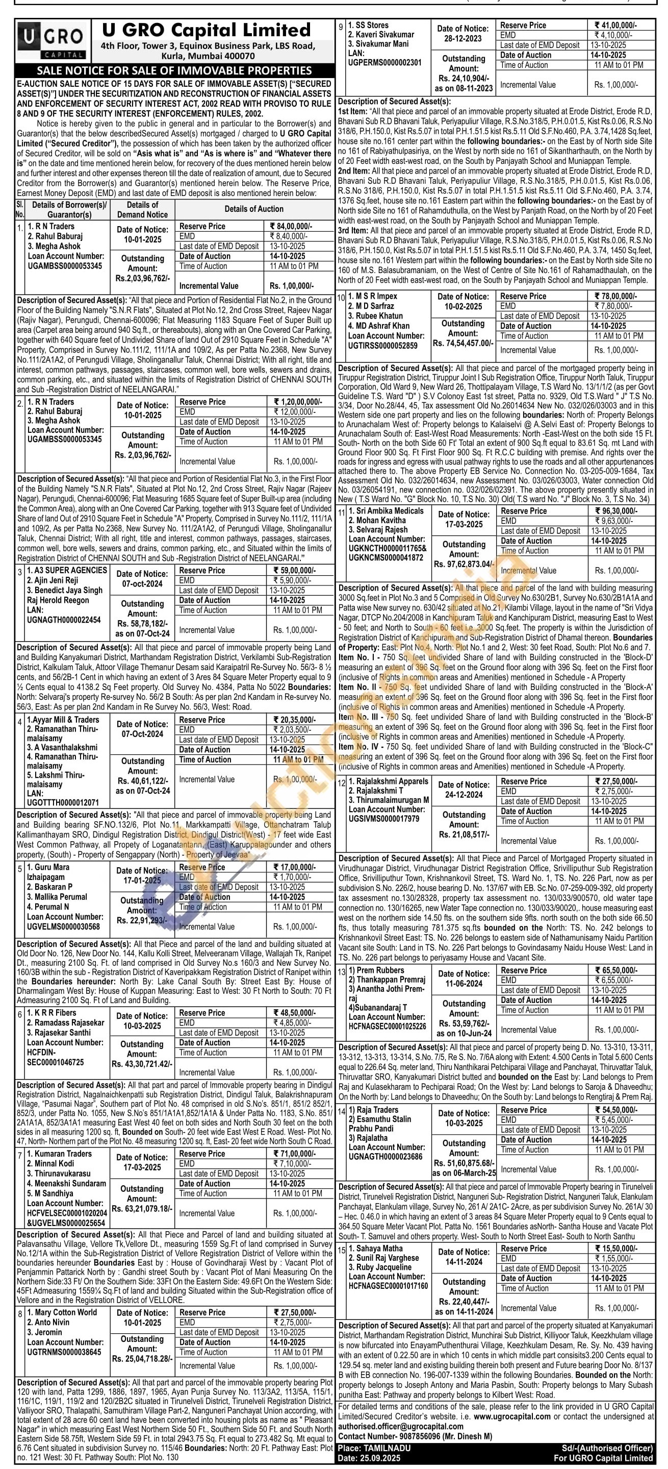 Description of Secured Asset(s): All that Piece and Parcel of Mortgaged Property situated in Virudhunagar District, Virudhunagar District Registration Office, Srivilliputhur Sub Registration Office, Srivilliputhur Town, Krishnankovil Street, TS. Ward No. 1, TS. No. 226 Part, now as per subdivision S.No. 226/2, house bearing D. No. 137/67 with EB. Sc. No. 07-259-009-392, old property tax assesment no.130/28328, property tax assessment no. 130/033/900570, old water tape connection no. 130/16265, new Water Tape connection no. 130/033/90020, house measuring east west on the northern side 14.50 fts. on the southern side 9fts, north south on the both side 66.50 fis, thus totally measuring 781.375 sq.fts bounded on the North: TS. No. 242 belongs to Krishnanikovil Street East: TS. No. 226 belongs to eastem side of Nathamunisamy Naidu Partition Vacant site South: Land in TS. No. 226 Part belongs to Govindasamy Naidu House West: Land in TS. No. 226 part belongs to periyasamy House and Vacant Site.