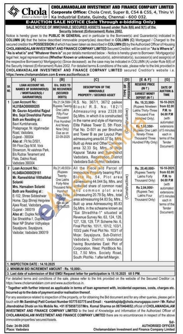 All the Piece and Parcel of Immovable Property bearing Plot Black No. 54, Plot areal admeasuring 44.044 Sq. Mtrs. and undivided share of common road and common plot area admeasuring 20.79 Sq. Mtrs, total area admeasuring 64.83 Sq. Mtrs Built up area Admeasuring 85.83 Sq.Mtrs. in the scheame known as "Sai Shradhha-1" situated at Revenue Survey No. 63, 124, 126, 127, 128, 129, T.P. Scheme No. 6. Final Plot No. 101/1, 101/2, 103/1, 103/2 paiki Final Plot No. 103/1 of Moje: Sayajipura, Sub-District: Vadodara, District: Vadodara having Boundaries East: Plot of Corporation, West: Plot/Block No. 53, 7.50 Mtrs. Society Road, South: Plot No. 1 after left Margin