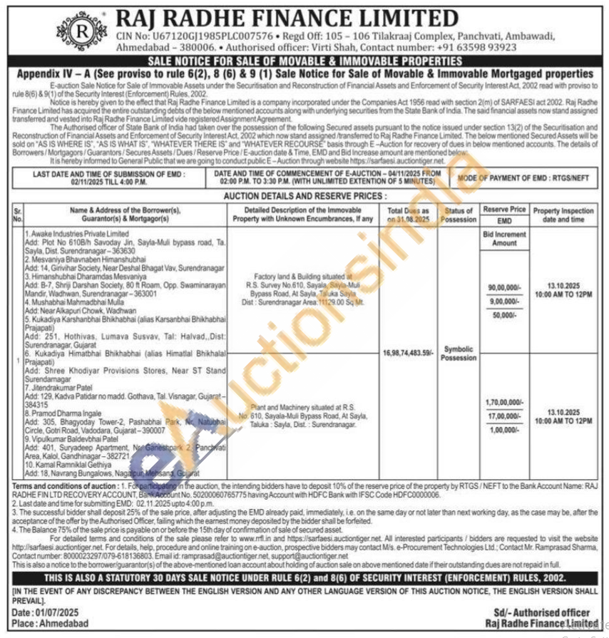Plant and Machinery situated at R.S No. 610, Sayala-Mull Bypass Road, At Sayla, Taluka Sayla. Dist: Surendranagar