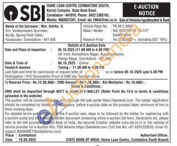 Vehicle Regn. No.: TN 99 V 2892 Make/Model : MG HECTOR PE 1.5 CVT SHARP BSVI