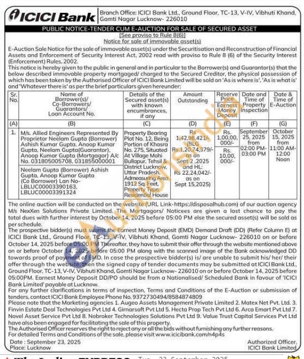 Property Bearing Plot No. 12. Being Portion of Khasra No. 275, Situated At Village Mohi Bullapur. Tehsil & District Lucknow, Uttar Pradesh. Admeasuring Area 1912 Sq. Feet, Property Type: Residential House
