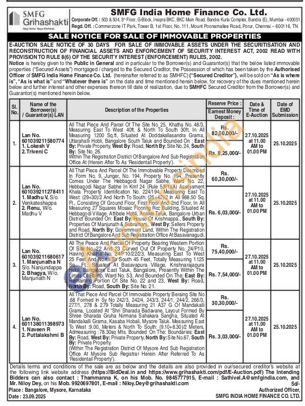 All That Piece And Parcel Of Immovable Property Beraing Site No 68 Formed In Sy No 242/3, 242/4, 243/3, 244/1, 244/2, 266/3, 277/1, 278 & 279 Totally Measuring 21 A37 G Of Mandakalli Grama, Located At "Shri Sharada Badavane, Layout Formed By Shree Sharada Gruha Nirmana Sahakara Sangha, Situated At Mandakalli Grama, Kasaba Hobali, Mysore Taluk. Measuring East To West 9.00, Meters & North To South: (9.10+8.30)/2 Meters, Admeasuring : 78.30sq Mts. Bounded On The: Boundaries: East By: Road, West By: Private Property, North By: Site No.67, South By: Private Property (Within The Registration District Of Mysore And Sub Registration Office At Mysore Sub Registrar Herein After Referred To As Residentail Property).