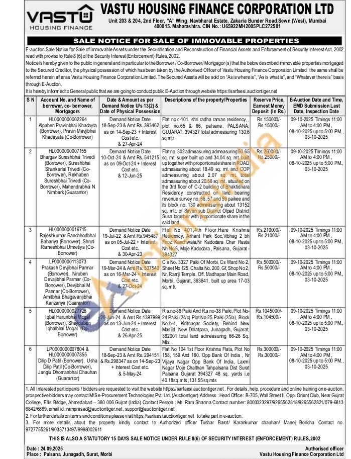 Authorized officer Tushar Barot/ Karanikumar chauhan/ Manoj Boricha Contact no. 9727755261/9033713497/9998002611,Mr. Ram Sharma Contact number: 8000023297/9265562818/9265562821/079-6813 6842/6869