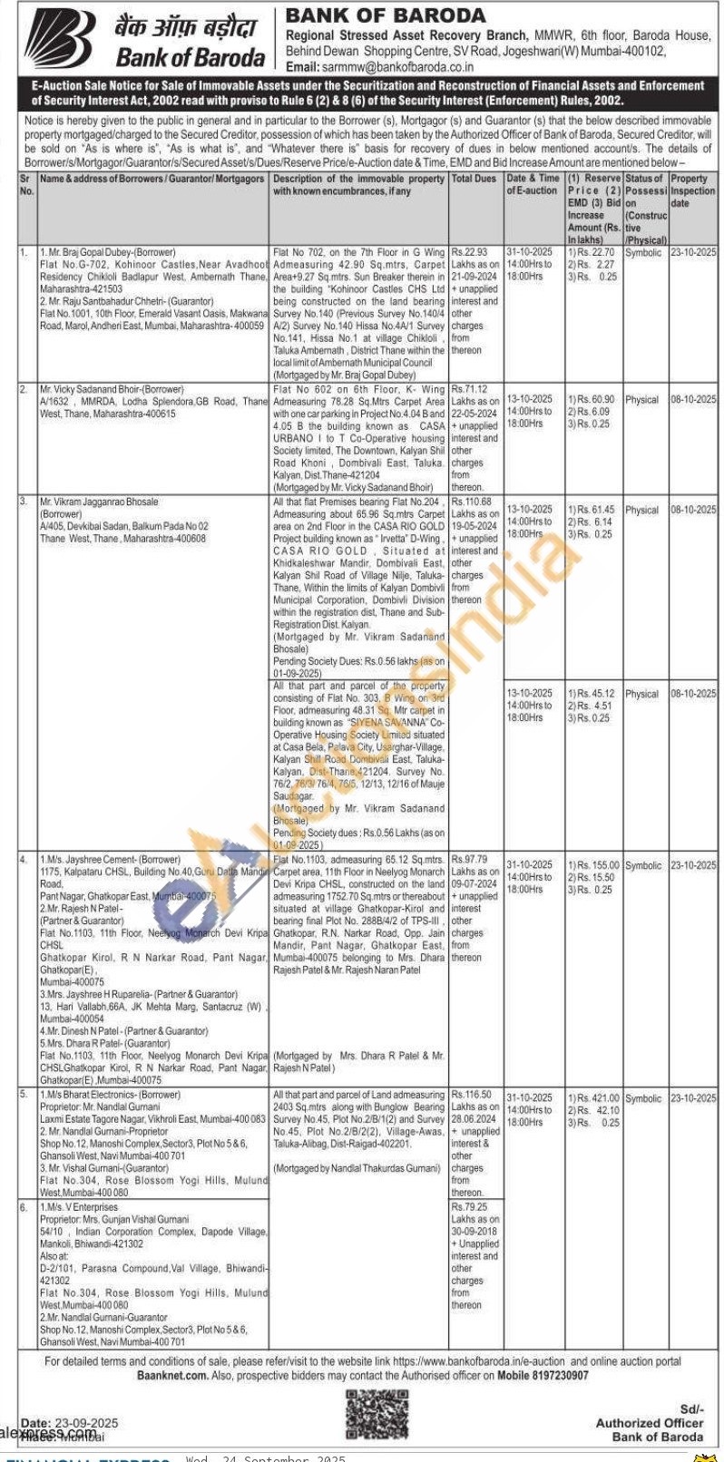 Flat No.1103, admeasuring 65.12 Sq.mtrs. Carpet area, 11th Floor in Neelyog Monarch Devi Kripa CHSL, constructed on the land admeasuring 1752.70 Sq.mtrs or thereabout situated at village Ghatkopar-Kirol and bearing final Plot No. 2888/4/2 of TPS-III, Ghatkopar, R.N. Narkar Road, Opp. Jain Mandir, Pant Nagar, Ghatkopar East, Mumbai-400075 belonging to Mrs. Dhara Rajesh Patel & Mr. Rajesh Naran Patel (Mortgaged by Mrs. Dhara R Patel & Mr. Rajesh N Patel)