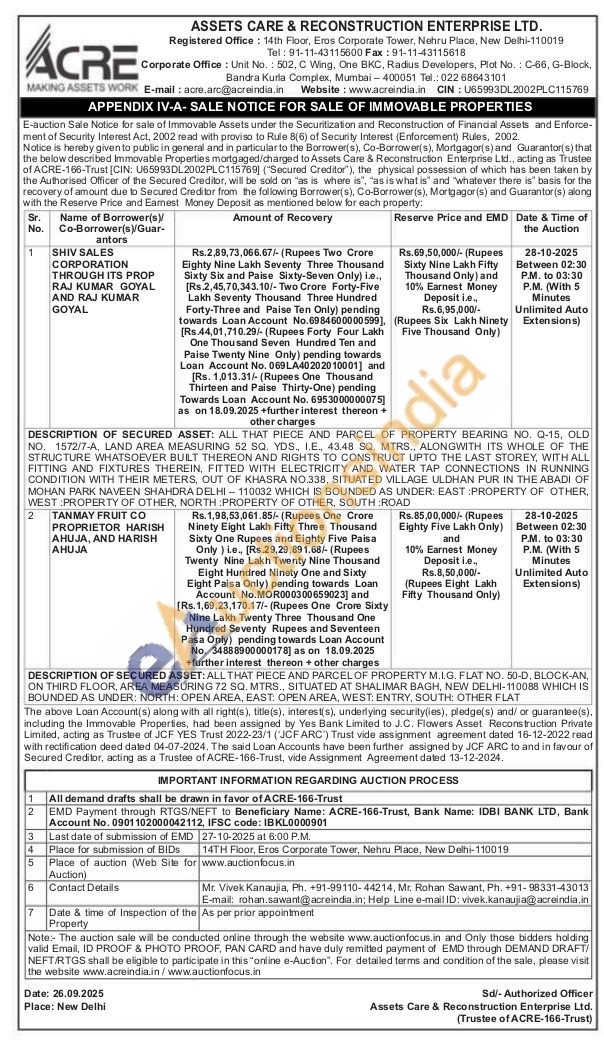 ALL THAT PIECE AND PARCEL OF PROPERTY BEARING NO, Q-15, OLD NO. 1572/7-A, LAND AREA MEASURING 52 SQ. YDS., I.E. 43.48 SQ. MTRS., ALONGWITH ITS WHOLE OF THE STRUCTURE WHATSOEVER BUILT THEREON AND RIGHTS TO CONSTRUCT UPTO THE LAST STOREY, WITH ALL FITTING AND FIXTURES THEREIN, FITTED WITH ELECTRICITY AND WATER TAP CONNECTIONS IN RUNNING CONDITION WITH THEIR METERS, OUT OF KHASRA NO.338, SITUATED VILLAGE ULDHAN PUR IN THE ABADI OF MOHAN PARK NAVEEN SHAHDRA DELHI-110032 WHICH IS BOUNDED AS UNDER: EAST PROPERTY OF OTHER, WEST PROPERTY OF OTHER, NORTH PROPERTY OF OTHER, SOUTH ROAD