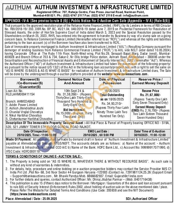 Authorized Officer: Mr. Dhiraj Jitubhai Parmar (Mobile No : 8401716438)
