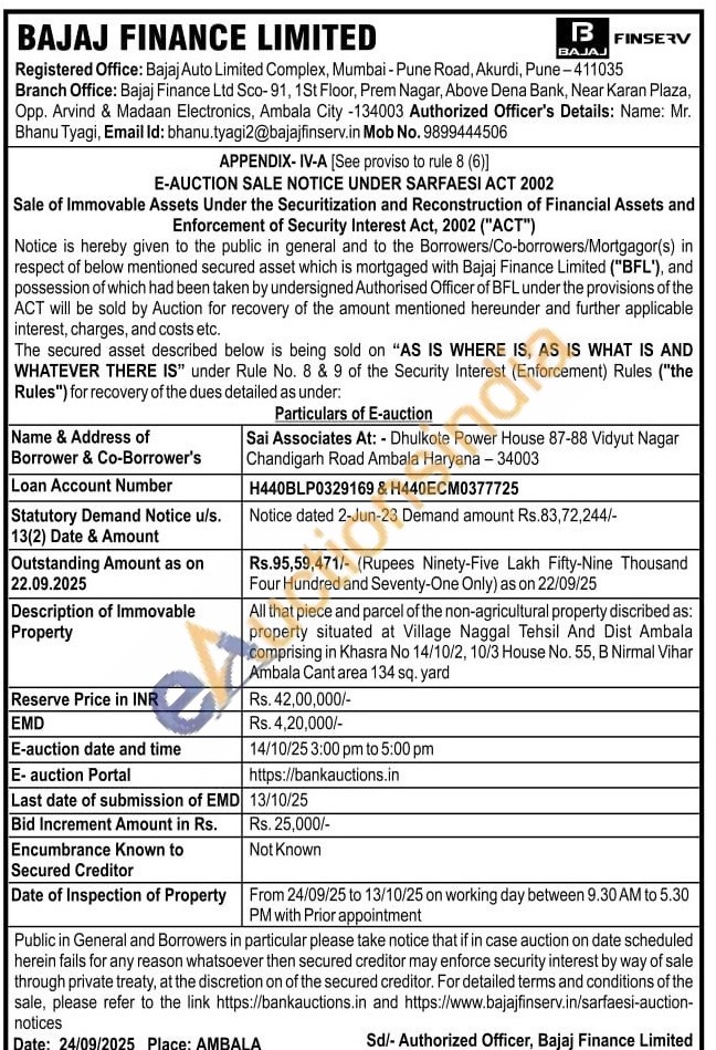 All that piece and parcel of the non-agricultural property discribed as: property situated at Village Naggal Tehsil And Dist Ambala comprising in Khasra No 14/10/2, 10/3 House No. 55, B Nirmal Vihar Ambala Cant area 134 sq. yard
