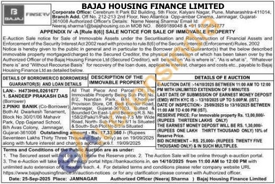 • Auction Start Date :  14-10-2025 11:00 AM