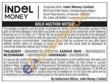 Indel money ltd Gold Auctions Auction in Kannur
