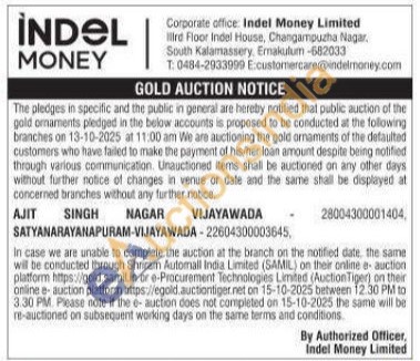Indel money ltd Gold Auctions Auction in Vijayawada