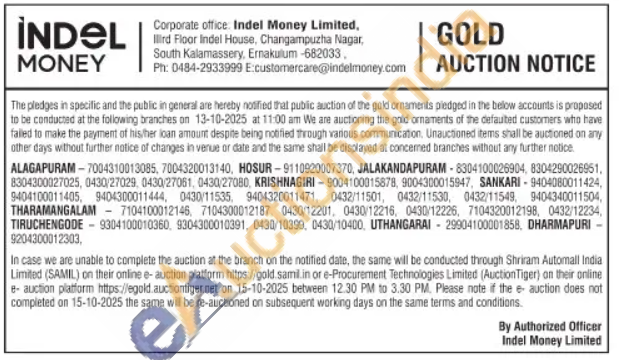 Indel money ltd Gold Auctions Auction in Dharmapuri