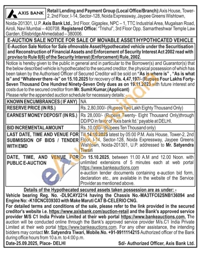 Vehicle bearing Reg. No. -DL8CBE4047 having the Chassis No. MALFE81ALNM396164 and Engine No:-G3LCNM705820 with HYUNDAI CAT C.