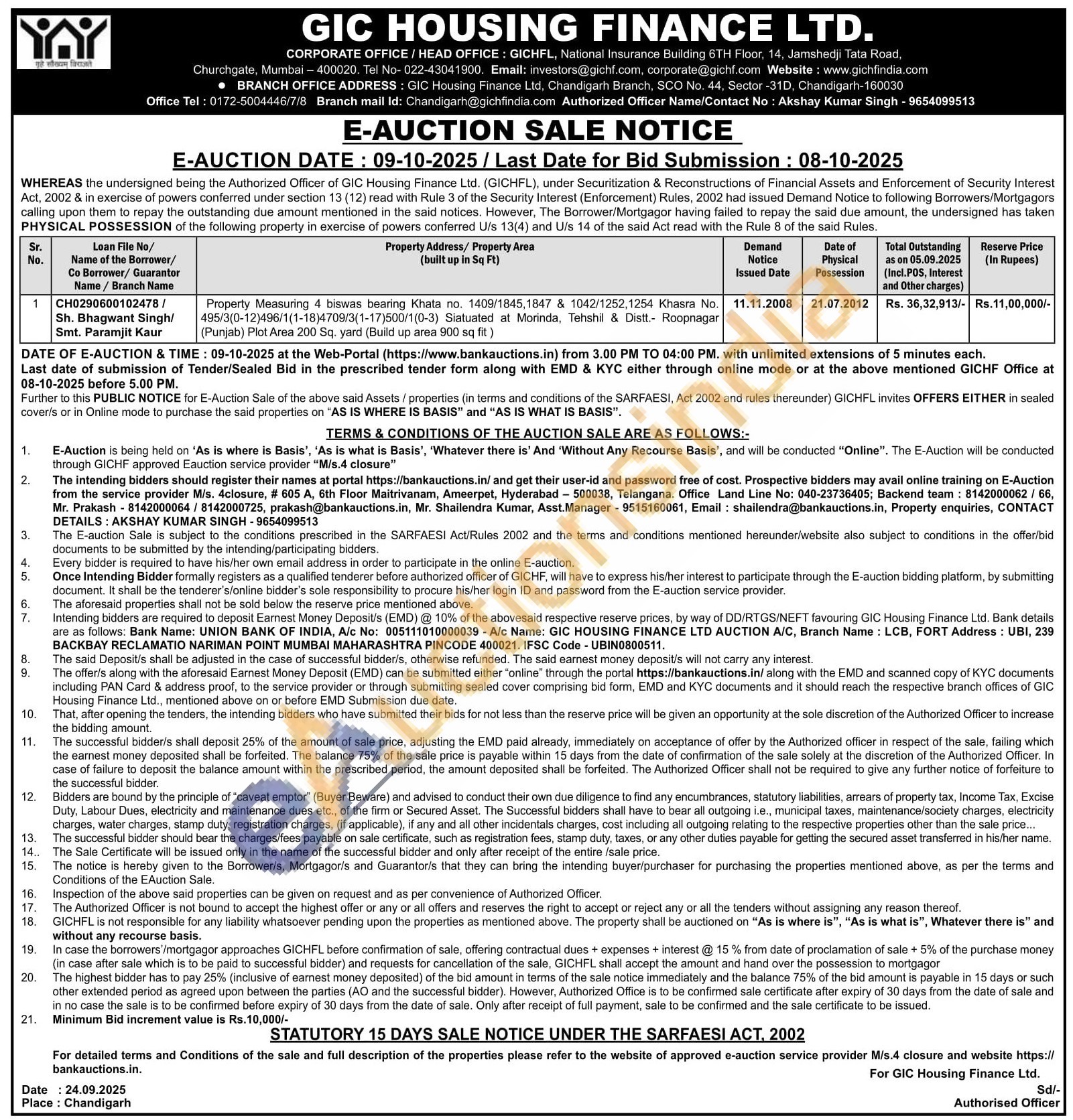 Property Measuring 4 biswas bearing Khata no. 1409/1845,1847 & 1042/1252,1254 Khasra No. 495/3(0-12)496/1(1-18)4709/3(1-17)500/1(0-3) Siatuated at Morinda, Tehshil & Distt. Roopnagar (Punjab) Plot Area 200 Sq. yard (Build up area 900 sq fit)