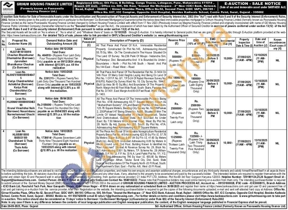 All The Piece And Parcel Of The Immoveable Property Being Plot No. 47/B Admeasuring 63.77 Square Meters Known As "Akshardham Society", Of Land Bearing Plot No. 47 Area Adm. 125.78 Square Meters, Bearing City Survey No. Na199/Paikee 2, 200/Paikee1/47 Being Sheet No. Na99, Situated Within The Limits Of Valsad Nagarpalika At Village Mograwadi, Taluka And Districtvalsad, Gujarat State. And Bounded As Under East: By 7.50 Meters Wide Internal Road. West: By Plot No. 28. North: By Adj. Survey No. 205. South: By Plot No. 47/A. Admeasuring Area Admeasuring 63.77 Square Meters.