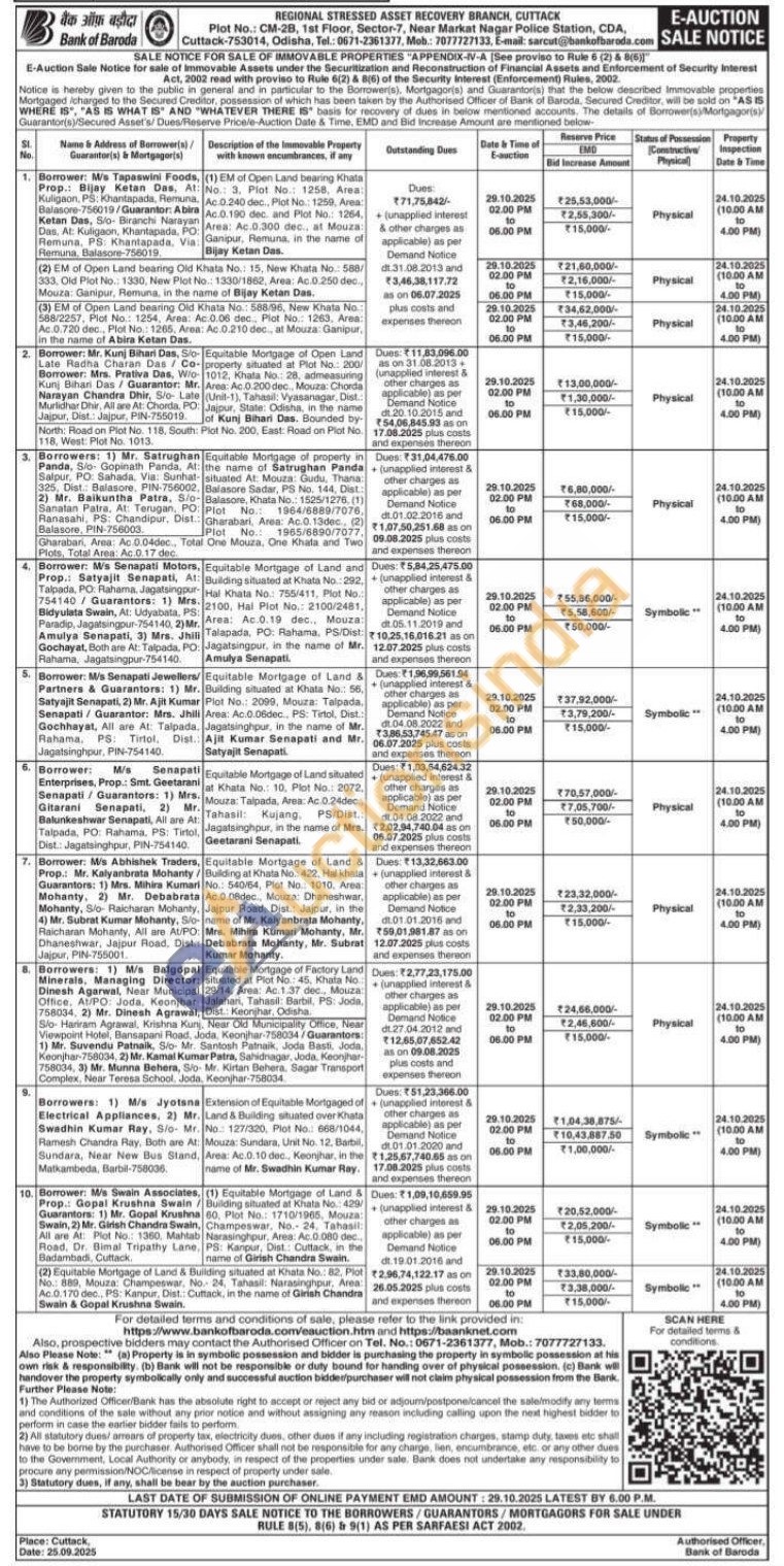 10) (1) Equitable Mortgage of Land & Building situated at Khata No.: 429/60, Plot No.: 1710/1965, Mouza: Champeswar, No. 24, Tahasil: Narasinghpur, Area: Ac.0.080 dec.. PS: Kanpur, Dist.: Cuttack, in the name of Girish Chandra Swain