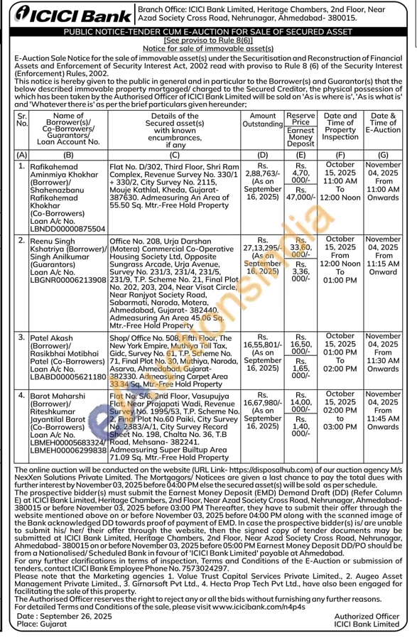 Flat No. S/6, 2nd Floor, Vasupujya Flat, Near Prajapati Wadi, Revenue Survey No. 1995/53, T.P. Scheme No. 2, Final Plot No.60 Paiki, City Survey No. 2383/A/1, City Survey Record Sheet No. 198, Chalta No. 36, Τ.Β Road, Mehsana- 382241. Admeasuring Super Builtup Area 71.09 Sq. Mtr.-Free Hold Property