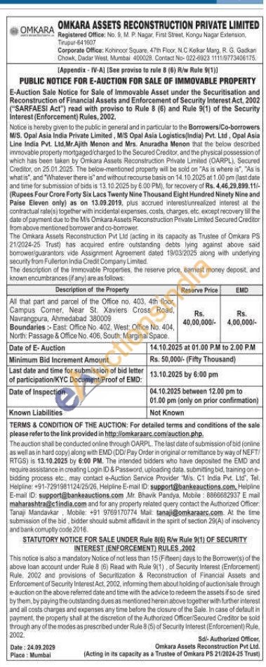 All that part and parcel of the Office no. 403, 4th floor, Campus Corner, Near St. Xaviers Cross Road, Navrangpura, Ahmedabad 380009 Boundaries: - East: Office No. 402. West: Office No. 404, North: Passage & Office No. 406, South: Marginal Space