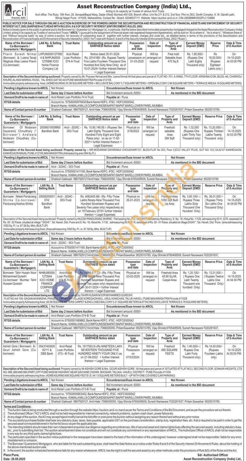 Description of the Secured Asset being auctioned Property owned by Mr ASHISH GORE & Mrs. GOURI ASHISH GORE: All that piece and parcel of: SITUATED AT FLAT NO 2, SECOND FLOOR, SONKAR HEIGHTS, CTS NO-888, 889 AND 890 (PART) OFF PUNE NASHIK HIGHWAY, NEAR GAVHANE CHOWK, BHOSARI, TALUKA-HAVELI, DISTRICT PUNE Pincode:411039 Immovable property admeasuring Area: (ADMEASURING 690 SQUARE FEETSLE. 64.13 SQUARE METERS BUILT-UP WITH ONE COVERED CAR PARKING