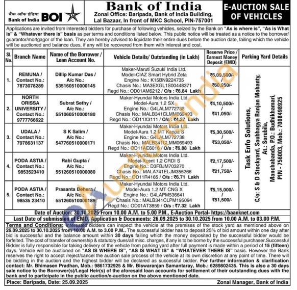 4) Maker-Hyundai Motors India Ltd. Model-Xcent 1.2 CRDI S Engine No.: D3FBJM703270 Chasis No.: MALA741ELJM355266 Regd No.: OD11R4165/