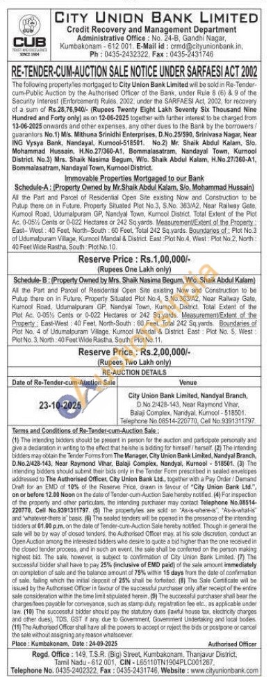 2) All the Part and Parcel of Residential Open Site existing Now and Construction to be Putup there on in Future, Property Situated Plot No.4, S.No.363/A2, Near Railway Gate, Kurnool Road, Udumalpuram GP, Nandyal Town. Kumool District. Total Extent of the Plot Ac. 0-05% Cents or 0-022 Hectares or 242 Sq yards. Measurement Extent of the Property East-West: 40 Feet. North-South: 60 Feet, Total 242 Sq yards Boundaries of Plot No. 4 of Udumalpuram Village, Kurnool Mandal & District. East Plat No. 5. West Plot No. 3, North: 40 Feet Wide Rastha, South: Plot No. 11,