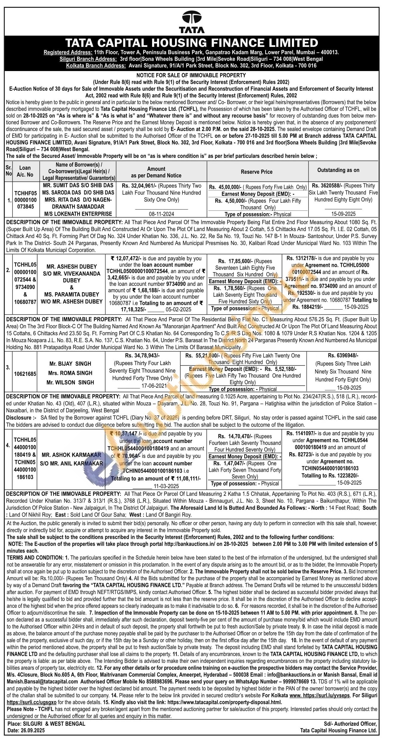 4) All That Piece Or Parcel Of Land Measuring 2 Katha 1.5 Chhatak, Appertaining To Plot No. 403 (R.S.), 671 (L.R.), Recorded Under Khatian No. 313/7 & 313/1 (R.S.). 3768 (L.R.). Situated Within Mouza-Binnauguri, J.L. No. 3, Sheet No. 10, Pargana Baikunthapur. Within The Jurisdiction Of Police Station New Jalpaiguri, In The District Of Jalpaiguri. The Aforesaid Land Id is Butted And Bounded As Follows:- North: 14 Feet Road, South Land Of Nikhil Roy, East: Sold Land Of Gour Saha: West: Land Of Bangiri Roy.